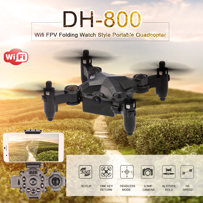 This WiFi FPV drone is super unique in its mini size. It is mini, foldable and light enough to fit literally anywhere! Portable watch style remote controller drone, a wonderful gift! The barometer set height and built-in six-axis gyro functions that will