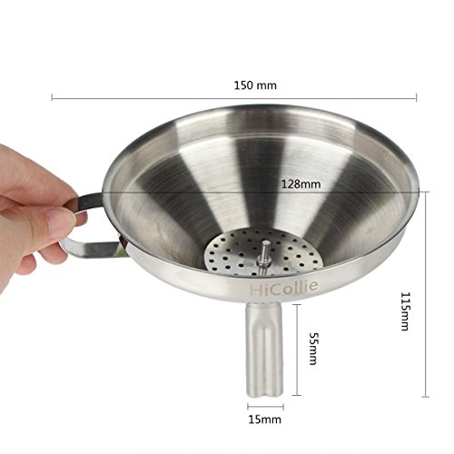 HiCollie Kitchen Stainless Steel Funnel with Detachable Strainer/Filter for Essential/Cooking Oils,Powder,Dry and Liquid Ingredients