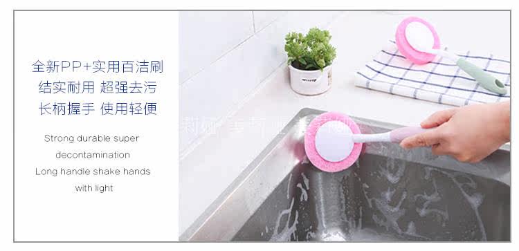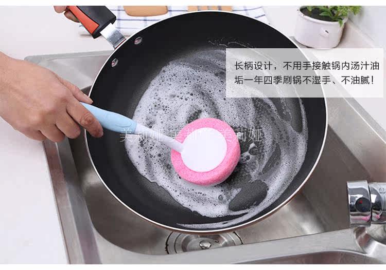海绵不粘油洗锅刷 长柄强力洗碗刷 厨房用刷清洁刷子 刷灶台杯刷