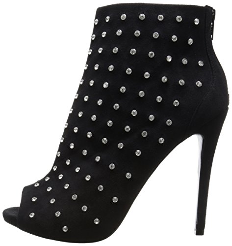 -. Feature : Compact bootie with open toe featuring all-over rhinestones and discreet rear zip