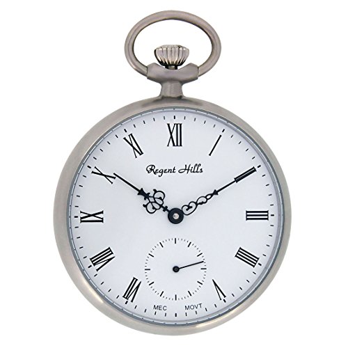 -. Title : Regent Hills Vintage Stainless Steel Case Open Face Mechanical Pocket Watch With Chain 9460S-W2