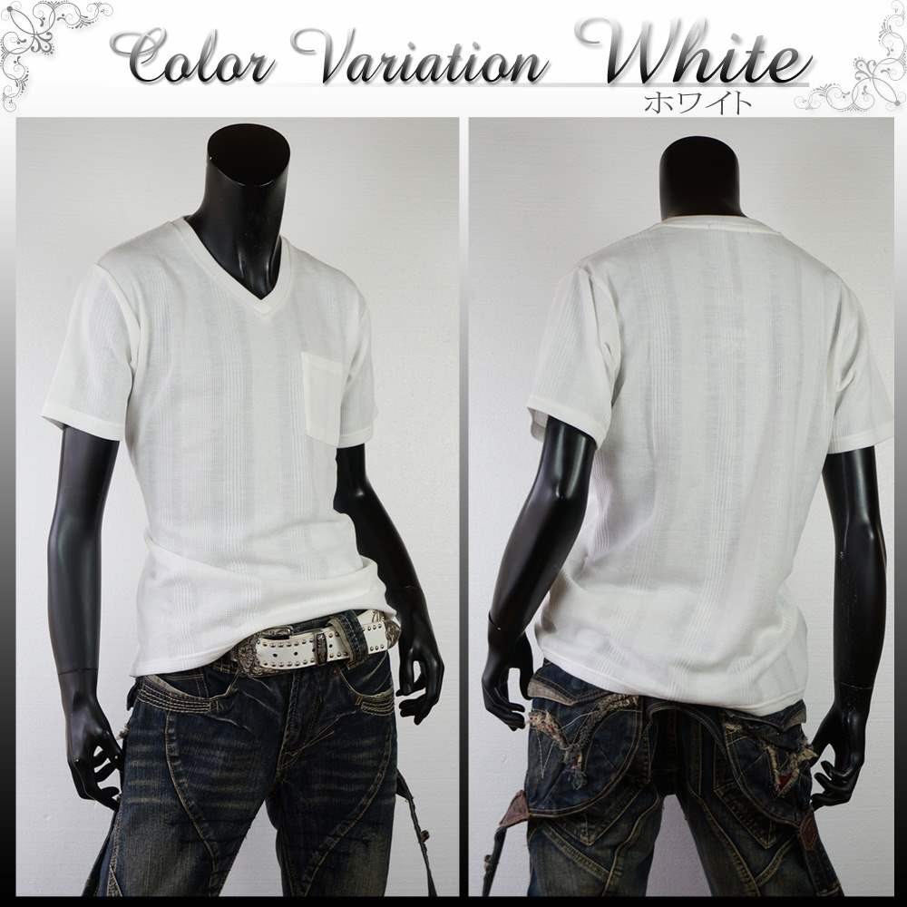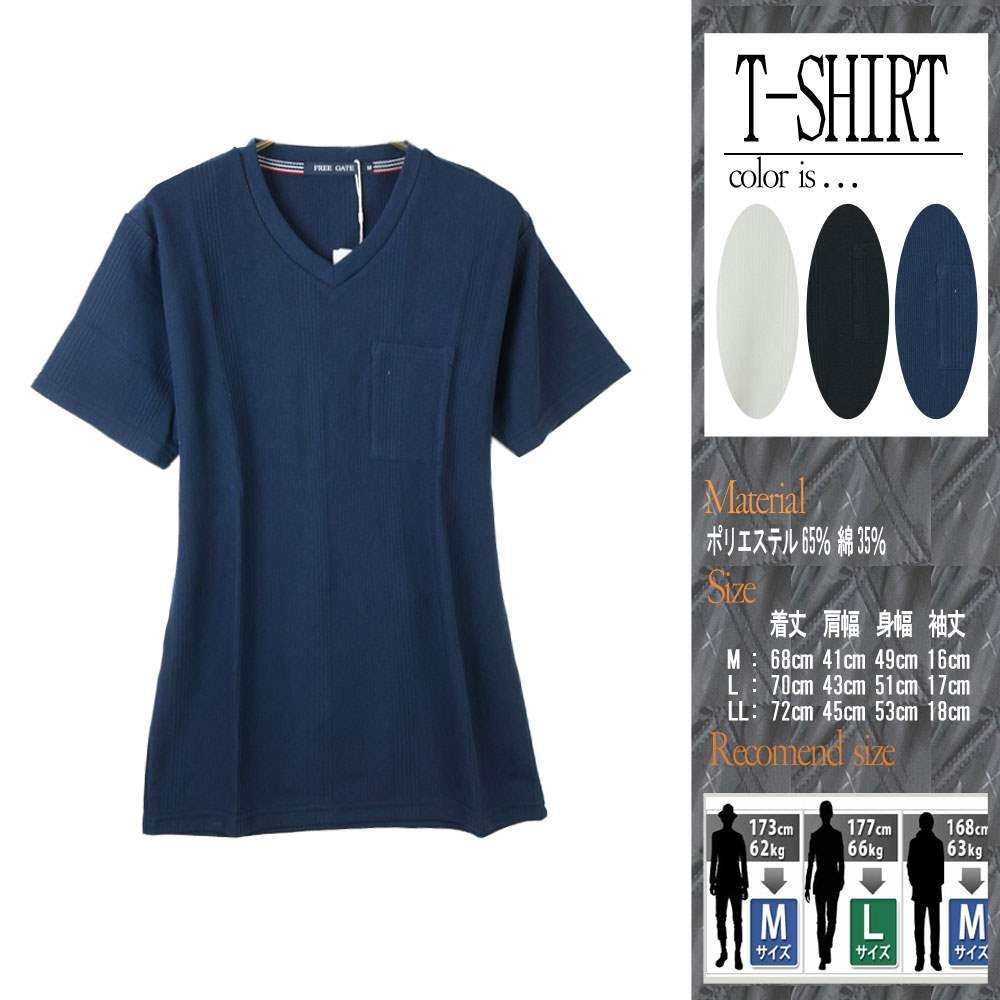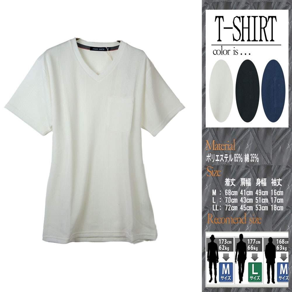 ◆説明:ランダムジャガードVネックTシャツ。 胸元のポケットがちょっとした時便利でポイントにも。 Vネックになっているので首元も綺麗に着ていただけます。 サガンスタイル 20180309新着 ◆カラー:ブラック(01)/ホワイト(06)/ネイビー(71) ※お使いのモニターやブラウザ等の環境によって多少画像の色が変わってしまう事がございます。 ◆サイズ:M ◆実寸:着丈68cm 肩幅41cm 身幅49cm 袖丈16cm ◆サイズ:L ◆実寸:着丈70cm 肩幅43cm 身幅51cm 袖丈17cm ◆サイズ:LL ◆実寸:着丈72cm 肩幅45cm 身幅53cm 袖丈18cm ◆体型別お勧めサイズ(C) 173cm/62kg→Mサイズ 177cm/66kg→Lサイズ 168cm/63kg→Mサイズ ※体型には個人差がありますのであくまで参考程度でご判断ください。 ◆素材:ポリエステル65% 綿35%