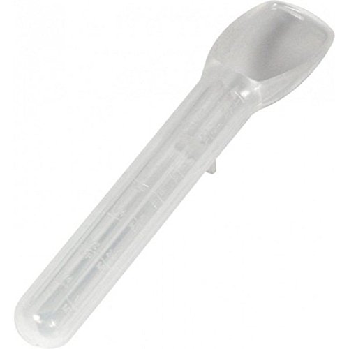 Medicine measuring spoon made from durable plastic, measures from 1 ml to 10 ml (1/4 tsp - 2 tsp)