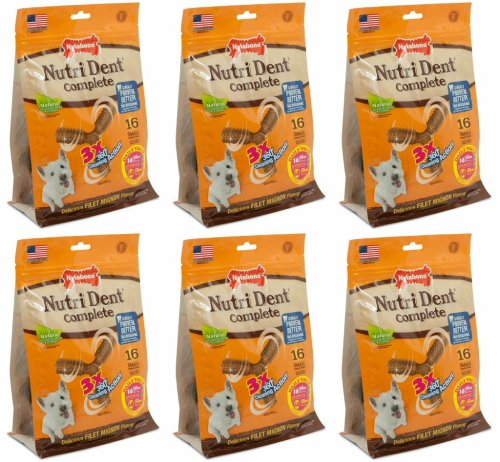 -. Title : Nylabone NutriDent Adult Filet Mignon 3 Point Bone, Small 96ct (6 x 16ct)
