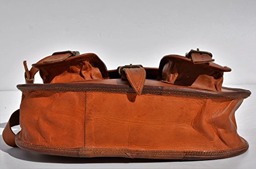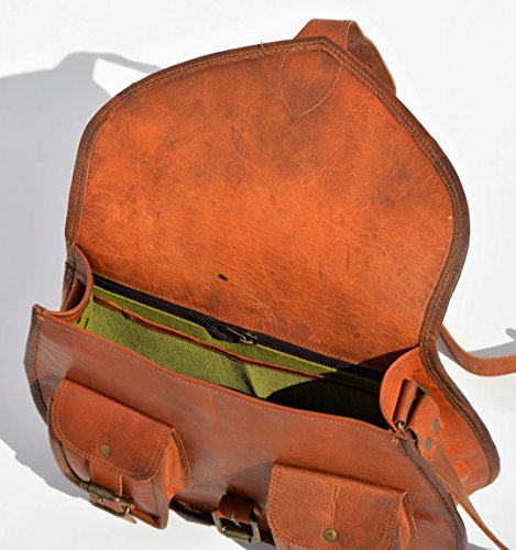 -. Feature : NOTE : Its a LARGE Bag. Size : 13 inches Tall and 10 inches Wide. / Style-messenger & cross body, Material - Leather , Color-brown / Handmade Leather Bag , Handcrafted, Vintage, Genuine Leather, Womens, Girls, Females Leather Bags / 3 Inner compartments, 2 Front Pocket and 2 Zipper Pockets, Long and adjustable Shoulder Straps / Brass/ Metal Fitting Buckles and Holders and Internally Lined with Strong Green Canvas Make it Durable and Long Lasting
