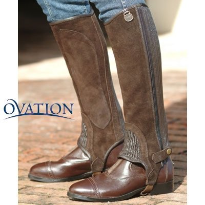 Studio : Ovation Publisher : Ovation Binding : Misc. Product Description Premium suede leather with ribbed stretchy panel provides a custom-like fit. Stretch ribbed skirt over the instep provides more coverage over your boots. Snap tabs on bottom of the dirt-resistant YKK zipper keep the zipper locked and in-place. Ovation is your go-to brand for all things English riding and Dressage. From genuine leather and suede to durable metal hardware, Ovation delivers high-quality apparel and accessories for today's classic rider. 0