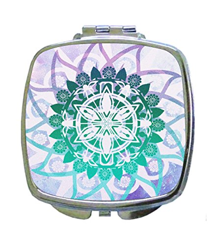 Silvertone metal compact square mirror. Measures 2.5" x 2.5" x .3". There are two mirrors inside this great compact. Great to have in your travel toiletry bags, to keep in your cosmetic cases both at home and on-the-go, and will fit neatly into your pocket. A perfect necessity for daily convenience