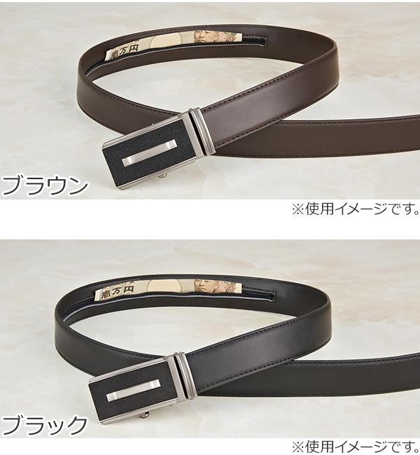 見た目は普通のベルトですが裏側にポケットがあり、その中にお札が入ります。ベルト穴不要のスライド式無段階調節です。