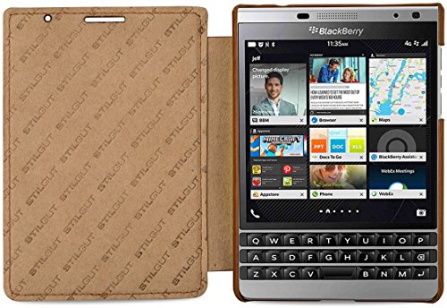 | StilGut Book Type and UltraSlim, Genuine Leather Case for BlackBerry Passport Silver Edition |