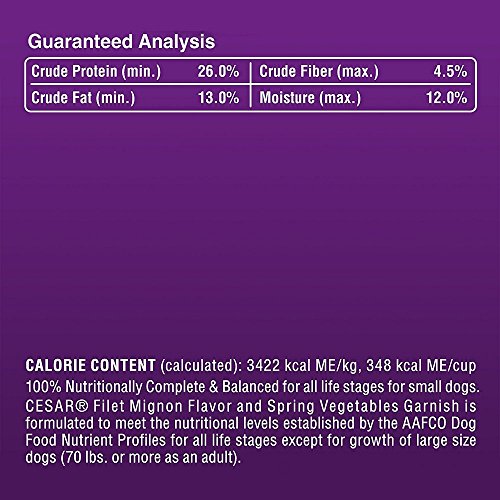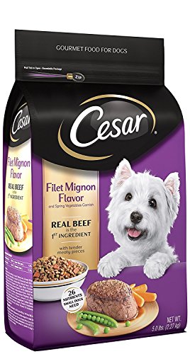 -. Binding : Misc. -. Brand : Cesar -. EAN : 0884409293153 -. Feature : Contains one (1) 5-lb. bag of CESAR Filet Mignon Flavor With SP.R.Ing Vegetables Dry Dog Food / CESAR Dry Dog Food is made with real beef as the first ingredient for a taste dogs love / This gourmet dog food is specially crafted with 26 nutrients that small breed dogs need / Your adult dog will adore the tender, meaty chunks in this delicious kibble for dogs CESAR Dry Dog food has a re-sealable zipper on every bag to help maintain freshness -. Label : United States -. Manufacturer : United States -. PackageQuantity : 1 -. ProductGroup : Pet Products -. ProductTypeName : PET_SUPPLIES -. Publisher : United States -. Studio : United States -. Title : CESAR Dry Dog Food (1) -. UPC : 884409293153