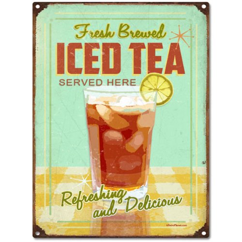 Iced Tea Served Here Cafe Metal Sign Kitchen Decor 12 x 16
