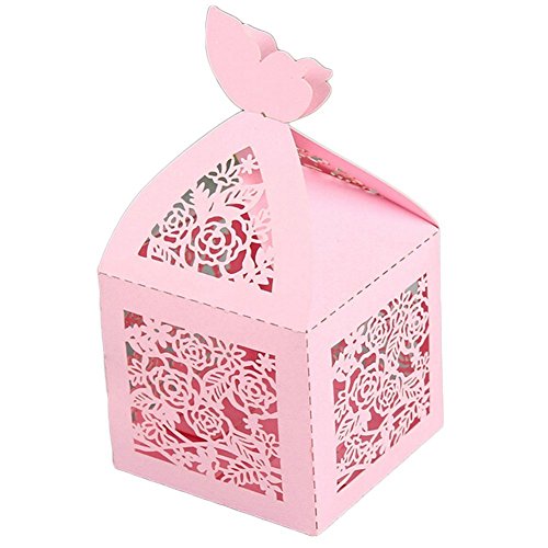 Sorive® 50pcs Rose Laser Cut Wedding Favors Candy Boxes Gifts Box Marriage Party Decors (Pink)