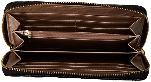 Anne Klein Shimmer Down Zip Around Wallet, Black, One Size