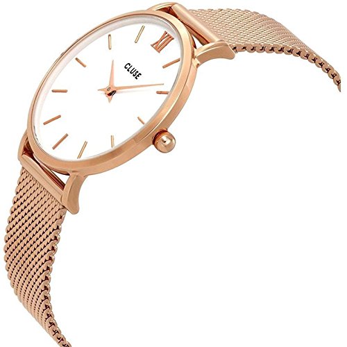 Minuit collection pays tribute to starry nights and elegant evening looks. The delicate design of this featherlight watch makes it the perfect accessory for a fashionable, yet subtle result. The watch features a 33mm case, where white is combined with rose gold details to create a beautiful minimal timepiece. The strap can be easily interchanged, allowing you to personalise your watch.Feature