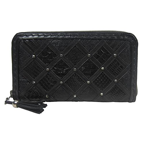 Binding : Apparel Product Description Exterior: 100% Genuine Black Cowhide with Python and Teju Lizard Patchwork Inlay | Interior: Cowhide Leather | Lining: Acetate | 8" x 4.5" | 15 Card Pockets | 6 on One Side | 9 on Other Side | 1 Large Pocket on Left Lining underneath the 9 Card Pockets Accordion Side Pocket on Inner Right | 2 Open | 1 Change Pocket with Zipper Closure 0