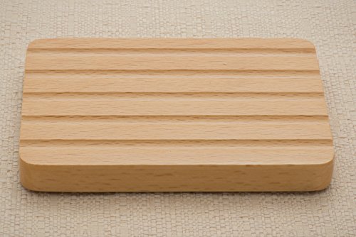 -. Title : Rectangle Grooved - Large (Beech Wood Soap Dish)