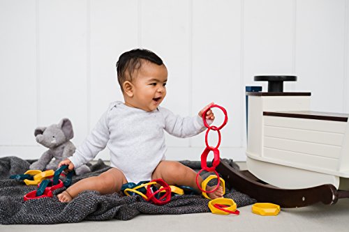 Baby & Me Bangles 3-pack - baby-safe jewelry for mom, teething toys for infants, linking toys for curious kids - BPA free (Teal)