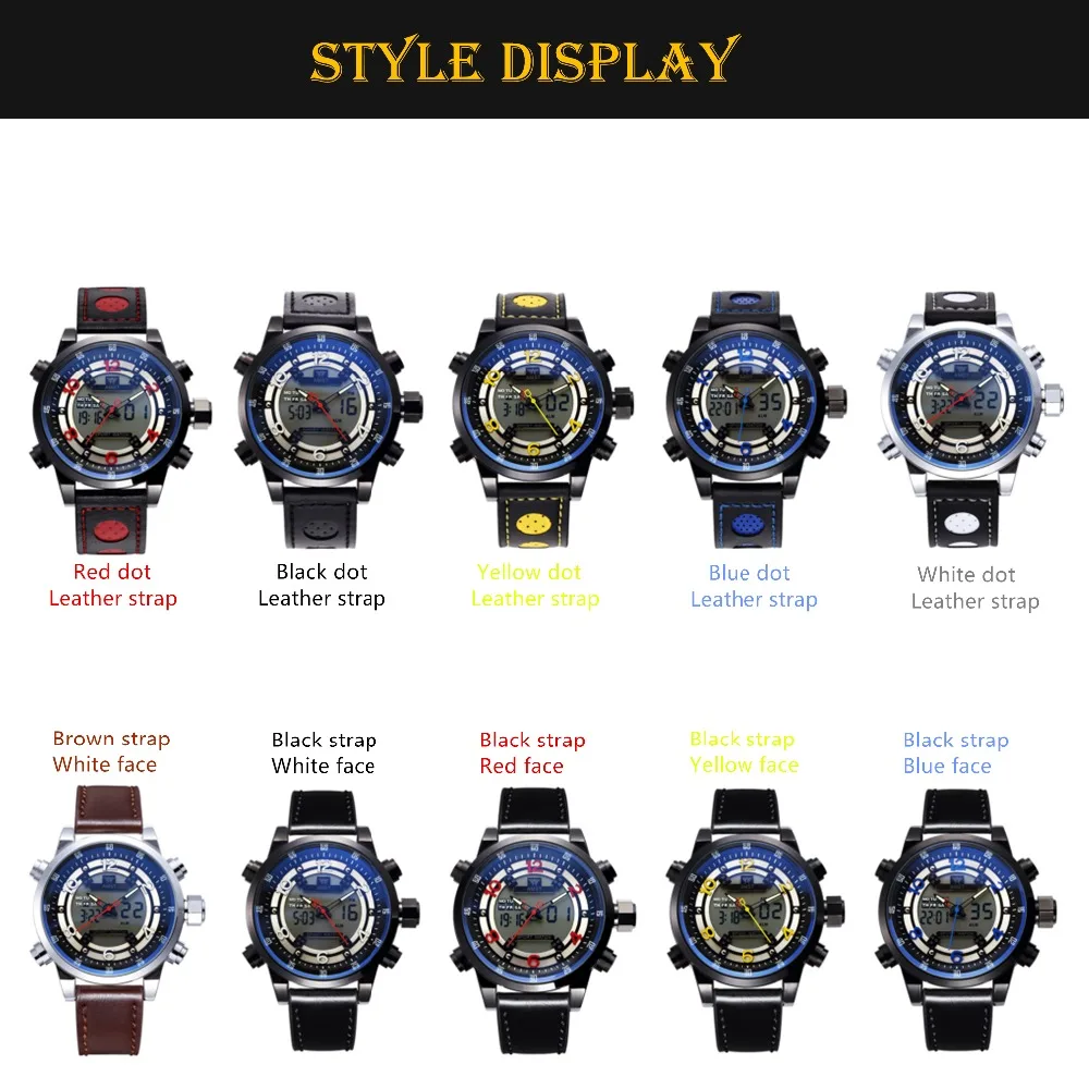 Watch type:LED digits and pointers Dual display