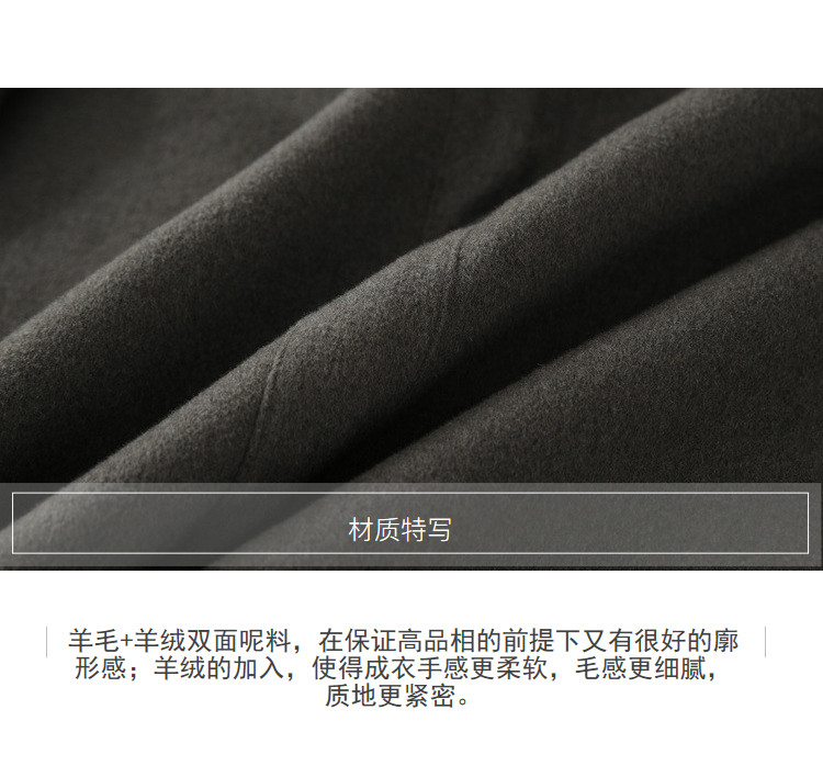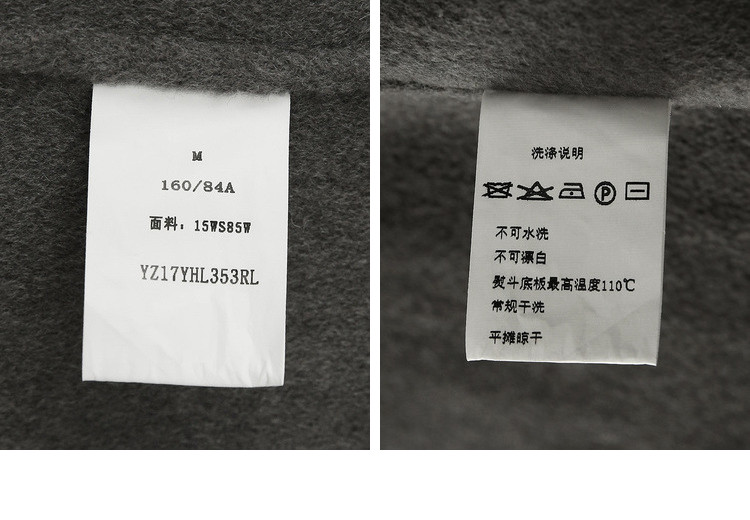 | 面料成分: | 面料:驼色、深灰:7.6%山羊绒、92.4%羊毛(连接线除外) 黑色:11.4%山羊绒、88.6%羊毛(含微量其他纤维,连接线除外) 袖里:100%聚酯纤维 |