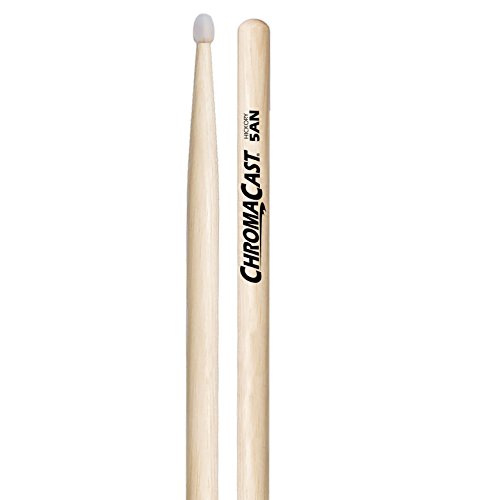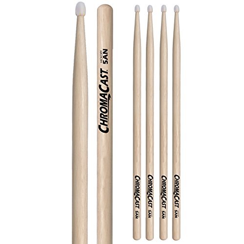 Studio : ChromaCast Publisher : ChromaCast Binding : Electronics Product Description ChromaCast USA Drumsticks are made from select hickory wood which is more dense and rigid than maple. Hickory is extremely durable and shock absorbing, it has minimal flex producing a more pronounced sound. The drumstick coating is gloss free to reduce slippage. Available in wood and nylon with teardrop or oval tip. ChromaCast USA Drumsticks are perfect for any drummer who wants to rock out on stage or at home. 0