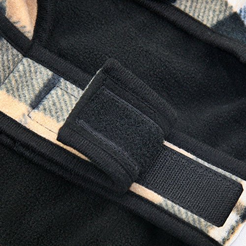 -. Feature : STAY WARM WHILE STAYING IN FASHION: Soft 'n' snuggly to the touch in a cute retro-chic design. After all, your animal companion deserves to stay warm and look good doing it! / VERSATILITY MEANS INCREASED UTILITY: Windproof comfort is easily stowable but robust enough for warmth. Tired of the plaid or camouflage? Then turn inside-out for a solid color! / JUST THE RIGHT HEFT: Not too heavy, it's easy to put on or take off and won't restrict even rigorous physical movement. / EASY-PEASY SUPER-FLEECY: Adjustable chest and belly straps secured by velcro make this convenient to put on or take off. Handy leash hole makes for additional ease. / EQUAL OPPORTUNITY WARMTH: Also good for cats and even rabbits, too! In all cases, please consult our sizing chart for the appropriate fit.