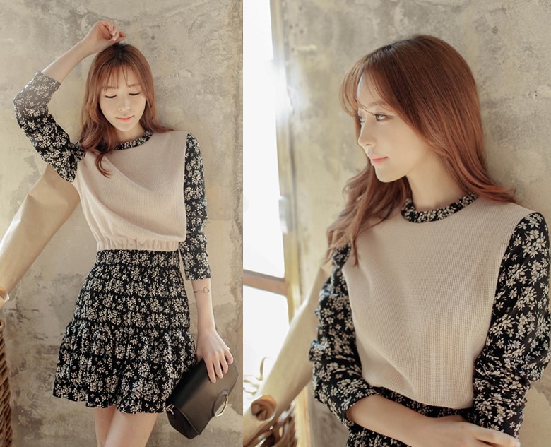 花柄ワンピースにベストを着ているみたいなキュートなデザイン♪