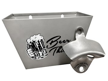 -. Brand : BARWARE GEAR -. Color : Stainless Steel -. EAN : 0646437334983 -. Feature : EASY MOUNTING / FREE MOUNTING SCREWS: Both the bottle opener and the cap catcher come with 2 stainless steel screws. (total of 4 screws) / MATCHING: The cap catcher has the words and logo of "Beer Thirty" on it with a modern bottle opener. They look great together!!! Your friends and family will know what time it is when opening their new bottle. / NO MESS: No more worries about what to do with you caps after using the Bottle Opener. Caps fall easily into Beer Thirty cap catcher / MODERN & DURABLE: The opener has a brushed finish to give it a modern design and is built well while the cap catcher is telling you it's "Beer Thirty". The cap catcher is stainless steel. / REMOVE BOTTLE CAP: Wall mounted bottle opener makes it easy to open your drink of choice with just one hand. Put the opener in our bar, patio, man cave, or on your cooler -. PackageQuantity : 2 -. ProductGroup : Kitchen -. ProductTypeName : KITCHEN -. Title : Barware Gear Bottle Opener & Catcher Bundle: Brushed Stainless Steel Wall Mount Bottle Opener With Beer Thirty Wall Mounted Bottle Cap Catcher with Stainless Steel Screws. Bar Stuff or Kitchen Gadget -. UPC : 646437334983