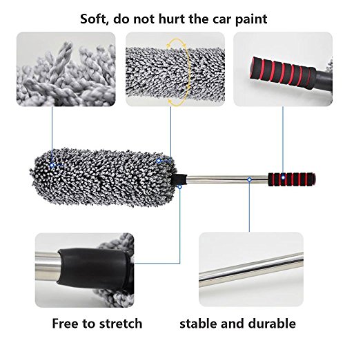 -. Feature : ✓ COMPLETE CAR DUSTING KIT: Our 2 Piece Duster Kit is the answer to cleaning the exterior and interior of your vehicle or home and office in a simple and efficient way; arriving in a zippered case are one extending long brush and one wash mitt (it send random color) for all dusting jobs; perfect for those who want to keep their possessions clean and dirt free; / ✓ DOUBLE THE COVERAGE: The Duster Kit's large brush has a long three hundred sixty degree head for quick cleaning as it easily sucks up dust; The Wash Mitt can strand wipe away grime and provide a swirl-free finish; / ✓ QUALITY MATERIALS USED: the larger car duster has a stainless steel shaft that expands to 31 inches long that includes the 16 inch long brush and a rubberized handle; the smaller wash mitt is double sided chenille microfiber! PLUSH MICROFIBER is safe on paint and other delicate surfaces; / ✓ SAVE TIME AND MONEY: you save time and money since you can go longer in between car washes and clean your car, truck, SUV, van, vehicle, boat, motorcycle, home, or office quickly without leaving scratches, smudges, or dirt; our competitors offer only one brush for the P.R.Ice, but you get two in our complete kit; / ✓ SATISFACTION GUARANTEE: Because All of our products are shipped by FBA; if you are not completely satisfied at any time or for any reason, you contact us for a replacement or full refund by Amazon, no questions asked.