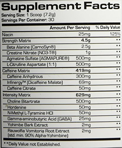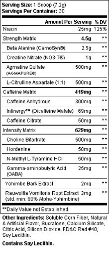 -. Feature : Potent combination of high-powered thermogenic compounds / Efficacious dose of creatine nitrate in every serving / Infinergy energy blend for maximum receptor sensitivity / Infused with agmatine sulfate for muscle-swelling pumps and nutrient transport / A true 30 days of mind-blowing workouts