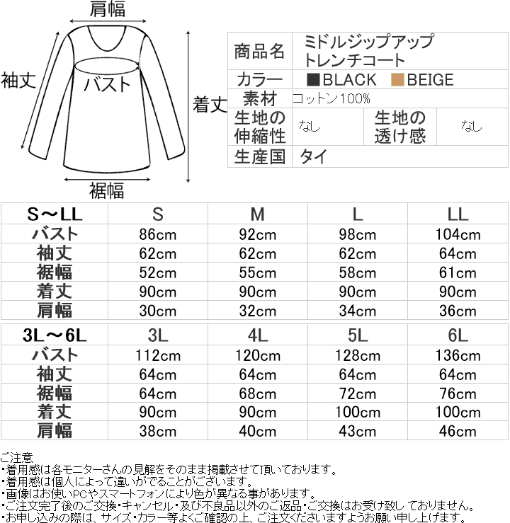 ミドルジップアップトレンチコート(TR) 大きいサイズ 春 セクシー レディース ギャル服 ギャル 大人 13号 15号 17号 19号 LL 2L 3L 4L 5L 6L 6L