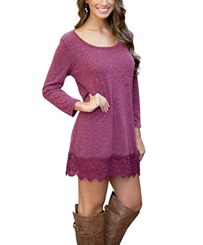 This women casual tunic dress features lace hem and cotton fabric which has a good stretchability, sexy and comfortable, simple but elegant.