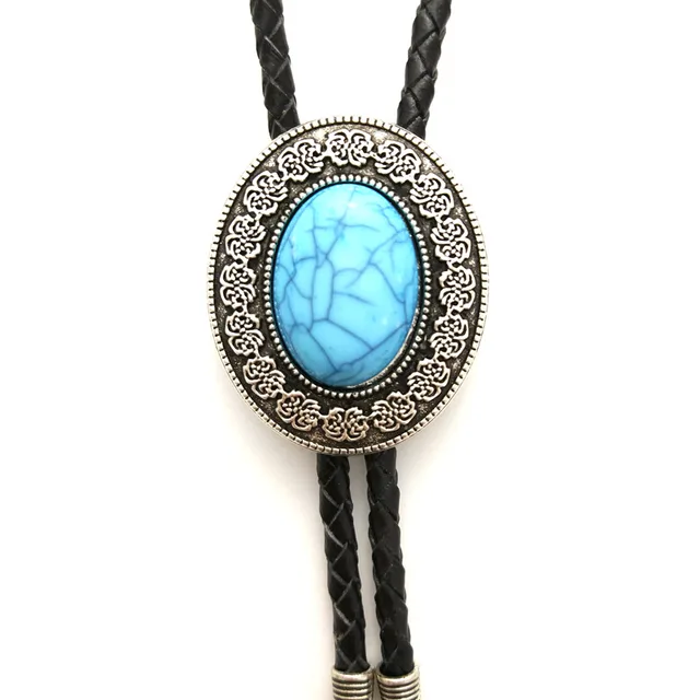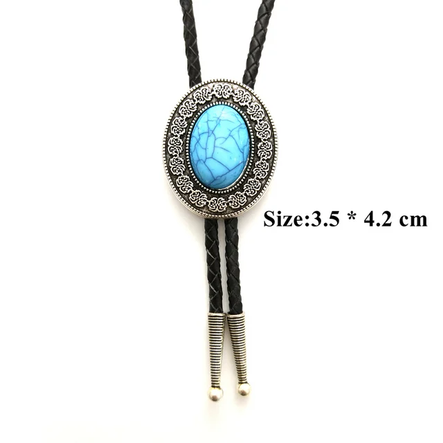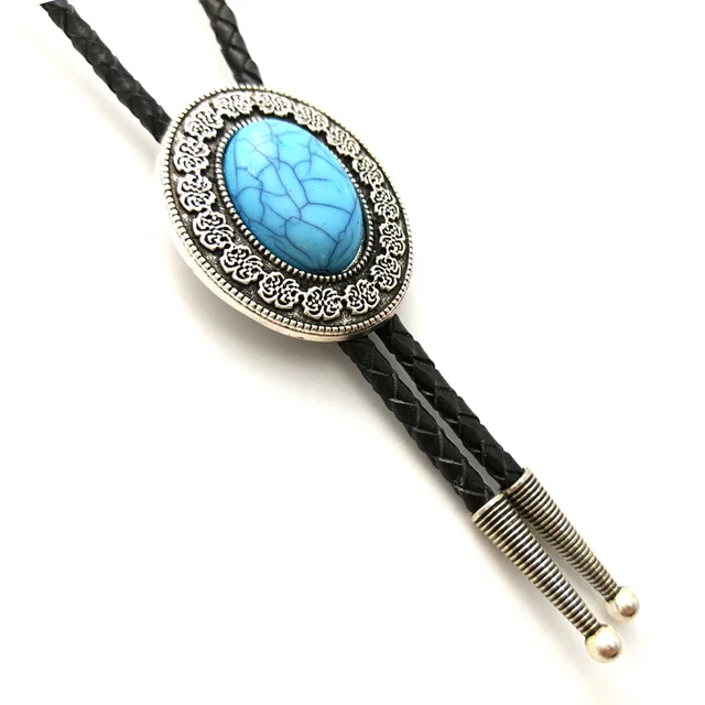 | [해외]남성 액세서리 카우보이 볼로 타이 블랙 pu 가죽 체인 복고풍 패턴 금속 buckels 터키석 장식 |