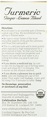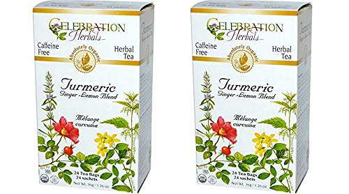 Celebration Herbals Organic Turmeric Ginger Lemon Blend, 24 Bags (Pack of 2)