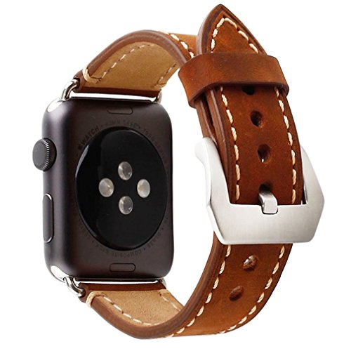 Top Leather Iwatch Strap - This fashionable Watch band features high quality craftsmanship with a comfortable feeling of genuine leather on your wrist.? Includes anti-slip and sweat absorbent 100% leather. Please NOTE that because of the natural variability of the Crazy Horse leather used in this band, the color may vary somewhat.