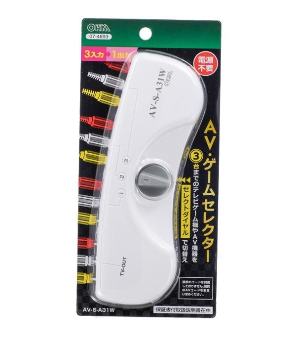 セレクトダイヤルで、テレビゲームやAV機器など3台まで切替え可能。電源不要の簡単接続です。 製造国:中国 付属品:取扱説明書兼保証書(保証期間:6ヶ月) ※サプライヤー直送品 ご注文後2~3営業日後の出荷となります【商品名】オーム電機 OHM AV・ゲームセレクター AV-S-A31W