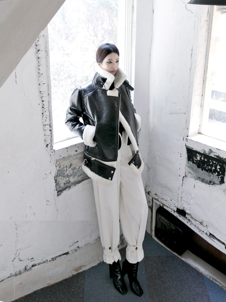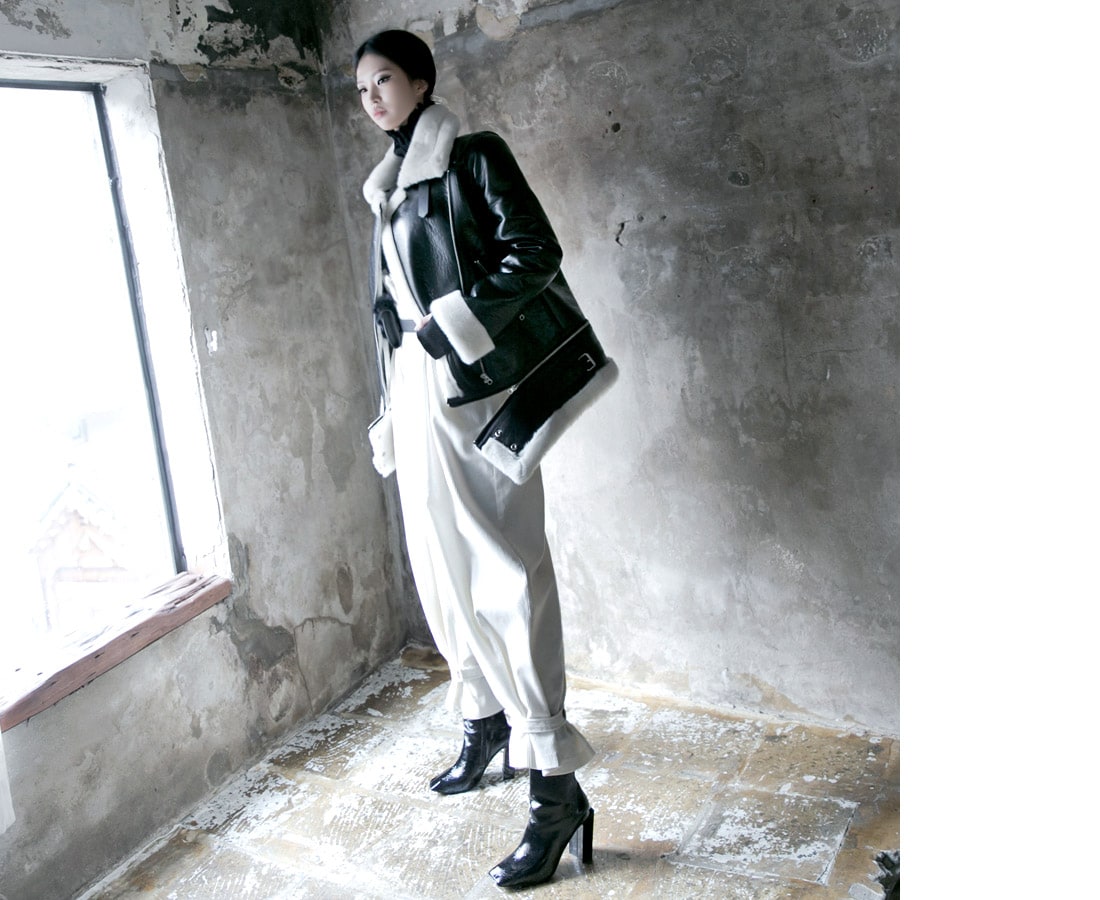 J-4800 위즌 컷팅 배색 무스탕 Black E1691 램드 데미지 골지 니트 탑 Black P1796 쿠마르 코듀로이 투웨이 팬츠 Ivory AH-084 심플 골지워머(27차리오더) Black AT-277 시즈닝 래빗 퍼 벨트백 Black AR-1964 리젠 포인트 앵클부츠 Black