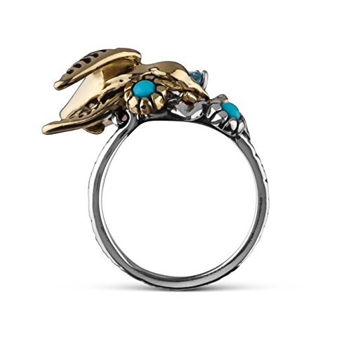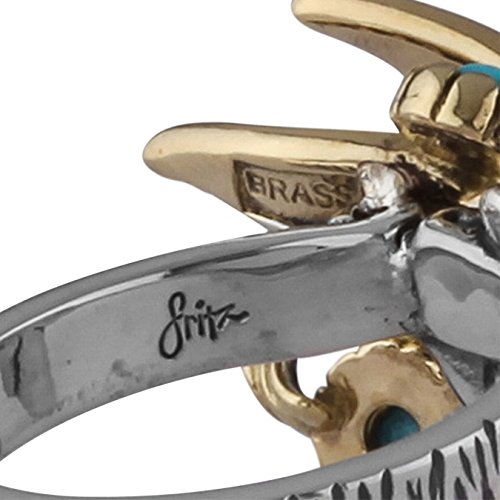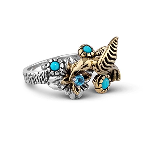 -. Title : Fritz Casuse Sterling Silver Mixed Metal Turquoise Blue Topaz Hummingbird Ring