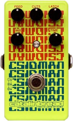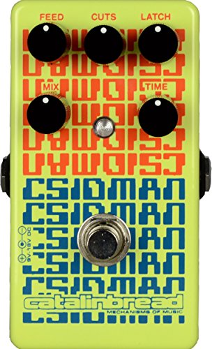 Studio : Catalinbread Publisher : Catalinbread Product Description The CSIDMAN can serve as a traditional delay pedal or go far beyond to reproduce glitch type sounds comparable to a skipping CD. As a delay pedal, it strives to reproduce echoes as true to the input as possible without filtering. When you utilize its scratched disc, stuttery, and glitchy behaviors, it is pseudo-random, yet gives you a certain amount of control over the randomness. Controls:TIME Controls the echo delay line s delay time up to 725mS, as well as the rate of the glitch.MIX Gives you control over the wet/dry balance from 100% wet to 100% dry.FEED Controls the amount of feedback going back into the unit.CUTS (used in conjunction with the LATCH knob) controls the buffer memory length.LATCH controls the relative time in a cycle that the CSIDMAN is in a latching skipping state. When full counterclockwise, it doesn t skip, allowing you to use the pedal as a traditional digital delay. When full clockwise, the unit is stuck repeating whatever is in the buffer memory. At noon, this knob is a 50/50 balance (though random) between a skip-playback state and non-skip sample state.Get your Catalinbread CSIDMAN Glitch/Stutter Effect Pedal today at the guaranteed lowest price from Sam Ash Direct with our 45-day return and 60-day price protection policy. 0