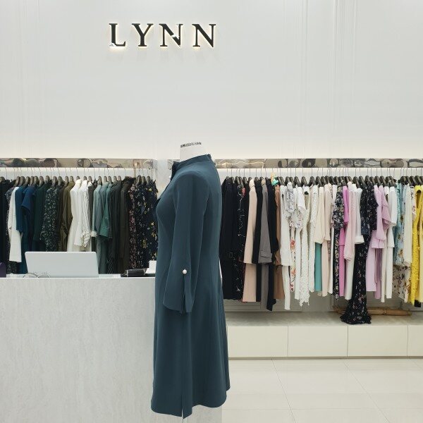하이넥디자인으로 허리라인 잘록해 보이는플레어 원피스입니다