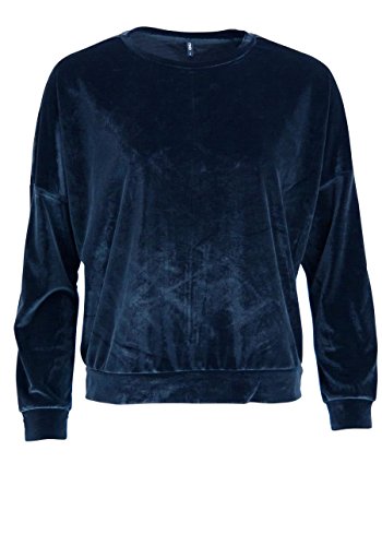 Only Damen Pullover Rundhals Langarm Samt Uni dunkelblau