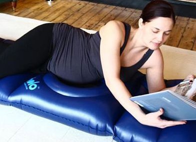The holo is an inflatable airbed/raft with a hole in the middle, developed for use in pregnancy to enable women to lie on their tummies. Before now, it has always been assumed that once your belly gets too big, front lying is just one of those things that you can't do, and just had to be accepted as part of pregnancy.