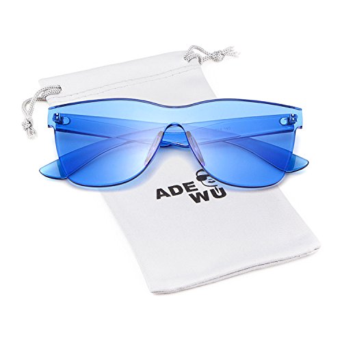 Rimless Sunglasses Transparent Candy Color Lens Rectangle Sunglasses for women