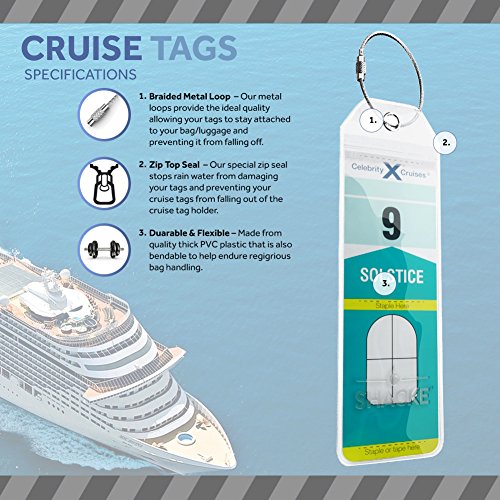 -. Brand : Shacke -. Color : Clear -. Feature : 8 x Slim Ship Tags - 7.25 x 2.5 in. / Made From Thick Clear PVC Plastic - Soft, Flexible, and Durable / Zip Top Seal Enclosure - Protect your e-tags from rain or falling out / Stainless Steel Metal Loop To Prevent Your Tag Detaching / Perfect for Royal Caribbean and Celebrity Cruises Printed Paper E-Tags -. ProductGroup : Apparel -. ProductTypeName : LAGE -. Title : Shacke 8x Slim Cruise Lage Tag Holder w/ Zip Top Seal & Stainless Steel Loops