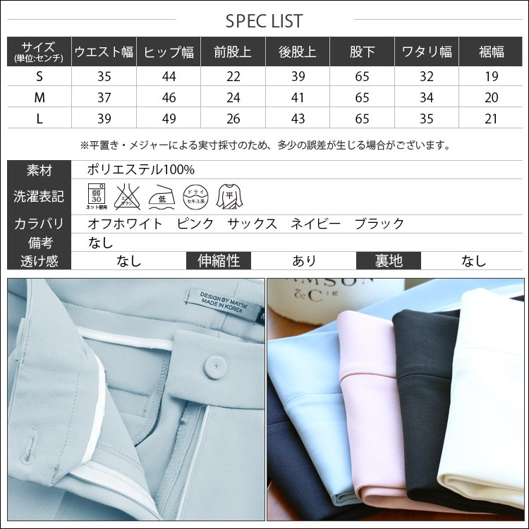 S:ウエスト幅 35cm ヒップ幅 44cm 前股上 22cm 後股上 39cm 股下 65cm ワタリ幅32cm 裾幅 19cm