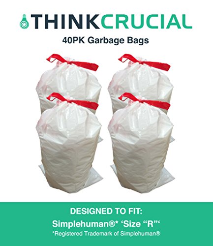 40PK Durable Garbage Bags Fit Simplehuman Size R, 10L / 2.6 Gallon, by Think Crucial