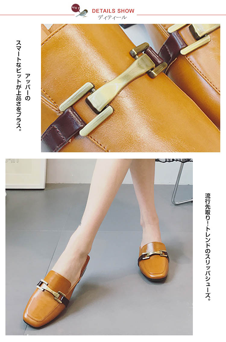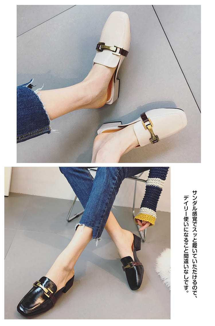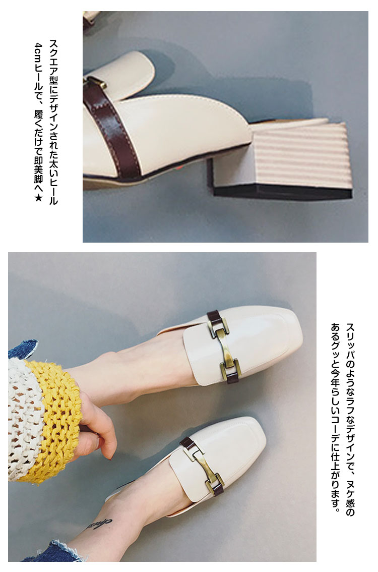 | トレンド感漂うおしゃれなスリッパシューズ!抜け感のある、ラフなルックスが今季のトレンドコーデと相性バツグンの1足。 また、スクエア型にデザインされた太いヒールで安定感も抜群です。サンダル感覚でスッと履いていただけるので、デイリー使いになること間違いなしです。 | |