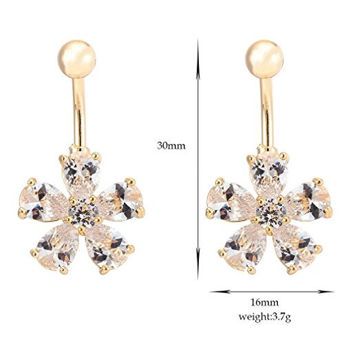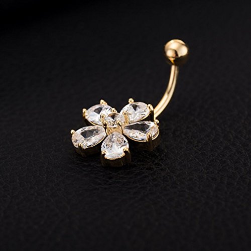 -. Title : 361l Steel Gold Navel Belly Button Ring Flower Petal Barbell Ball Body Piercing Jewelry