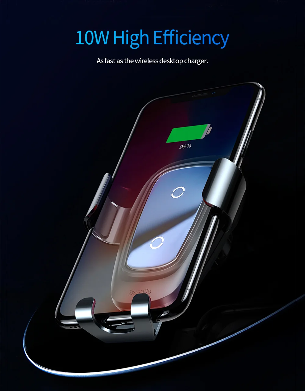 Feature 5::10W QI Wireless Charging Charger Car Mount Phone Holder