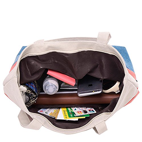 BG® Women Canvas Blue Black Multi Colored Tote Shoulder Handbag