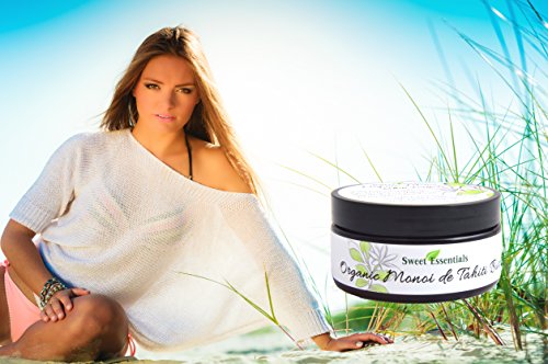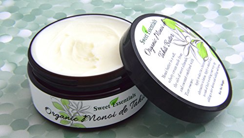 Monoi butter is made through a process called effleurage, a painstaking extraction method. It works like this: Before the blossoms open, they are picked by hand, then rushed to a perfumery plant. There, they are steeped in oil for no less than 15 days. The time-consuming process slowly releases the flower's unique properties for use in perfumery. Related to the glistening gardenia, Tiare is the floral emblem of French Polynesia, celebrated as the flower of love and renowned for its nutrient-rich essence. A creamy white, pinwheel-shaped flower, it releases a scent that's heady, at turns sweet and exotic. A Tiare flower worn behind one's ear is said to signal the wearer's romantic availability. ----- Skin Care: Monoi has been scientifically tested and proven to provide long-lasting moisturization and have soothing and purifying effects on the skin. Monoi moisturizes skin so well that, in the ancient times, early Polynesians used to cover their newborn babies from head to toe with Monoi to protect them from dehydration. ----- Hair Care: Monoi butter can be used as a pre-shampoo hair treatment to deep condition and protect hair from atmospheric aggressions. The butter can make the hair more soft, silky and shiny. If combined into an emulsion for creams and lotions, Monoi Butter will add moisturizing benefits as well as essential aroma aspects to the finished product. This butter is excellent for almost anyone to use, including babies ....... How To Use: For Hair:Apply a small dab (pea sized) onto palms. Rub palms together. Gently rub / scrunch into hair. Can be used on dry or damp hair. Safe for color treated and chemical treated hair.... | .... For Skin: Apply a thin layer where desired. Apply before bed on dryer spots for extra moisturization.Feature